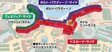 東京ディズニーシーのメディテレーニアンハーバーに面したサイド。